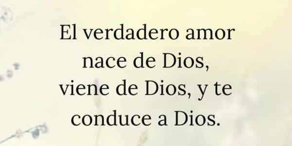 Imágenes con frases bonitas del amor verdadero. El verdadero amor nace de Dios, viene de Dios y te conduce a Dios. El amor es el Sentimiento de vivo afecto e inclinación hacia una persona o cosa a la que se le desea todo lo bueno. El amor verdadero es el sentimiento de afecto, pasión, intimidad y compromiso genuino que una persona siente por otra. El amor verdadero es un concepto difundido por la literatura romántica y fantástica. El amor verdadero es ese sentimiento vivido en pareja con el que muchas personas sueñan. Conviene puntualizar que para que el amor sea verdadero es necesario que exista reciprocidad. No existe amor si uno ama pero no es correspondido. Solo es posible crear un proyecto compartido en común de la mano de la colaboración mutua y de la voluntad de ambos. El amor verdadero viene de la mano del cariño incondicional. Ese sentimiento tan fuerte a través del que una persona conoce de verdad a otra no solo en sus virtudes sino también, en sus defectos.